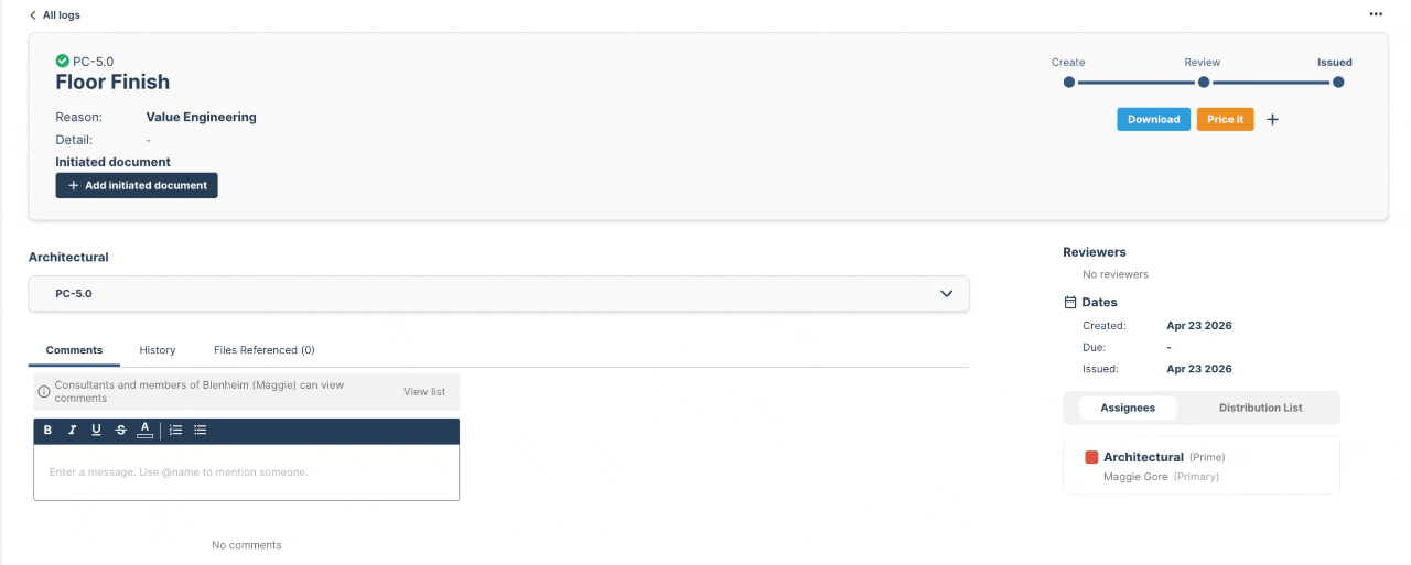 Sometimes work needs to happen very quickly in construction. If you need to convert your PC into a CD, it only takes a few clicks. As soon as you click ' Create CD', you'll be directed to that newly created document. The proposed change will automatically be linked as the 'Initiating Document'.