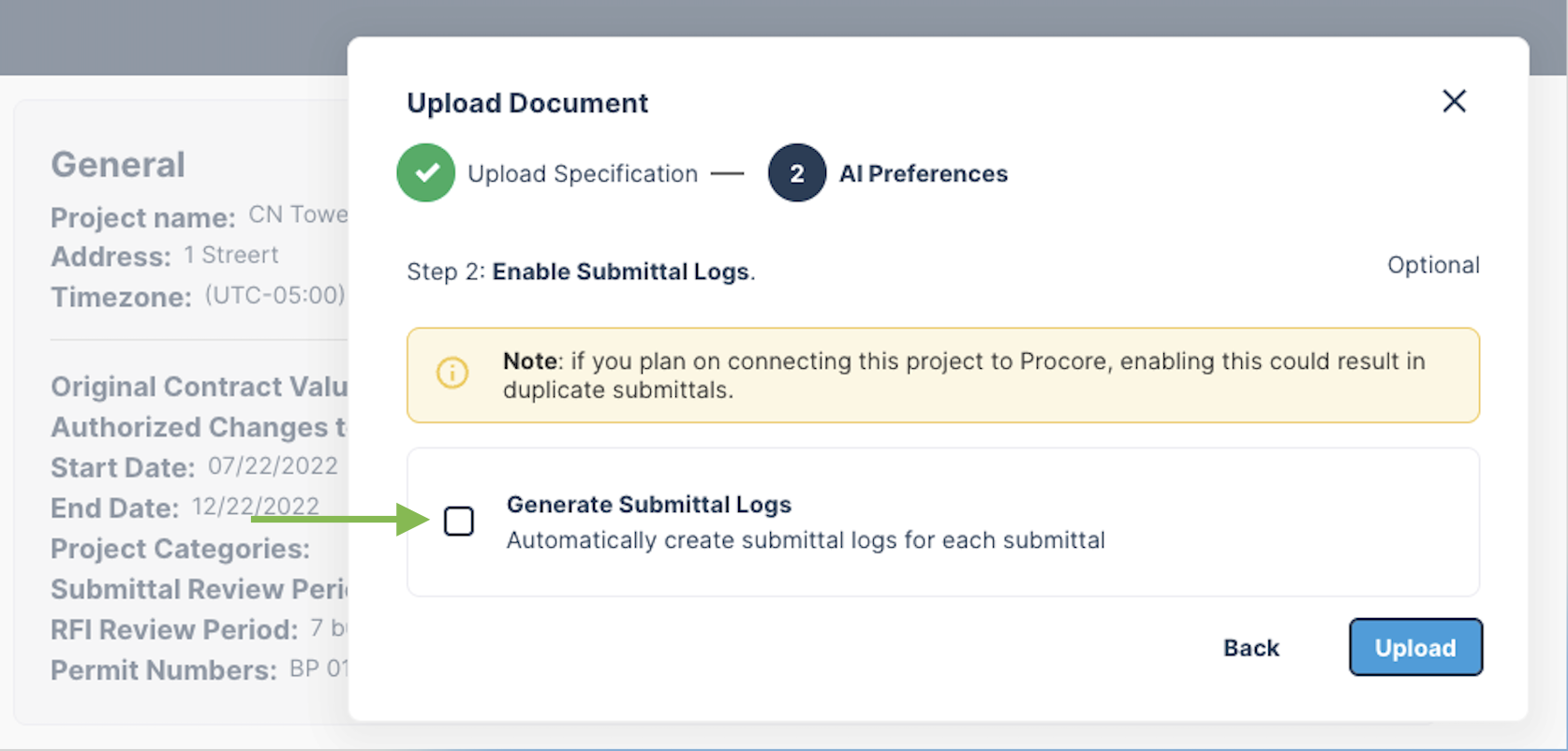 If you didn’t enable the Submittal Assistant when you first uploaded your specs, no worries — you can enable it anytime by: