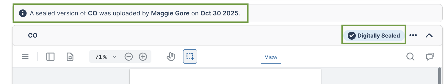 - Now your sealed document is included in Part3! You'll see that the document has been 'digitally sealed' with the blue pill next to the document name (see below).