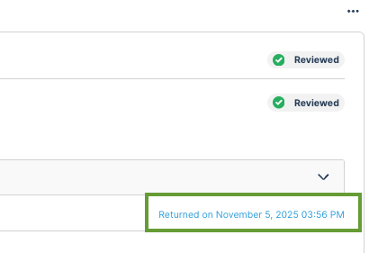 Step 1: Make sure all assignees have submitted their reviews. You can confirm this by checking under each assignee’s step—if it says “returned on [Date & Time]” in blue, their review is complete.
