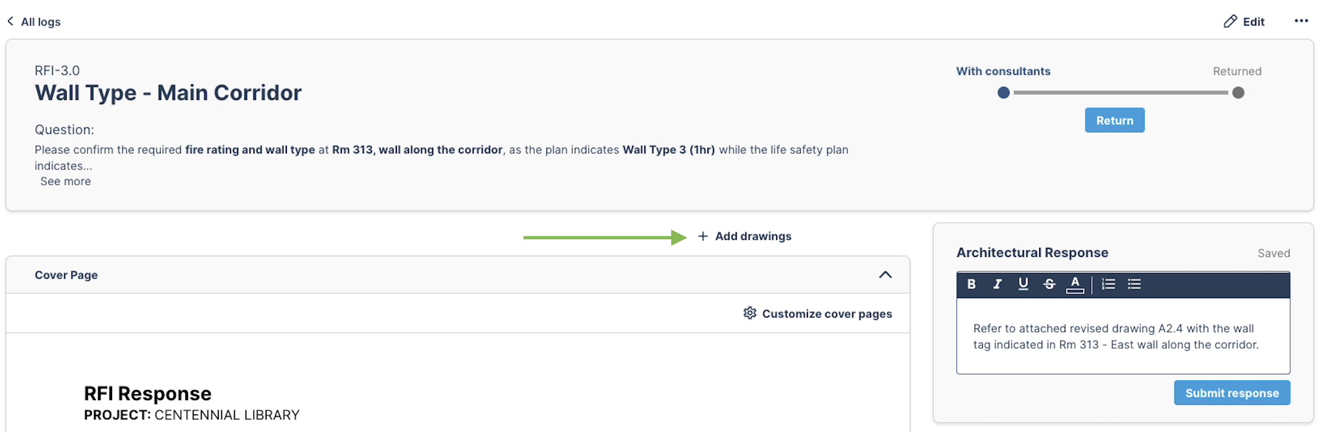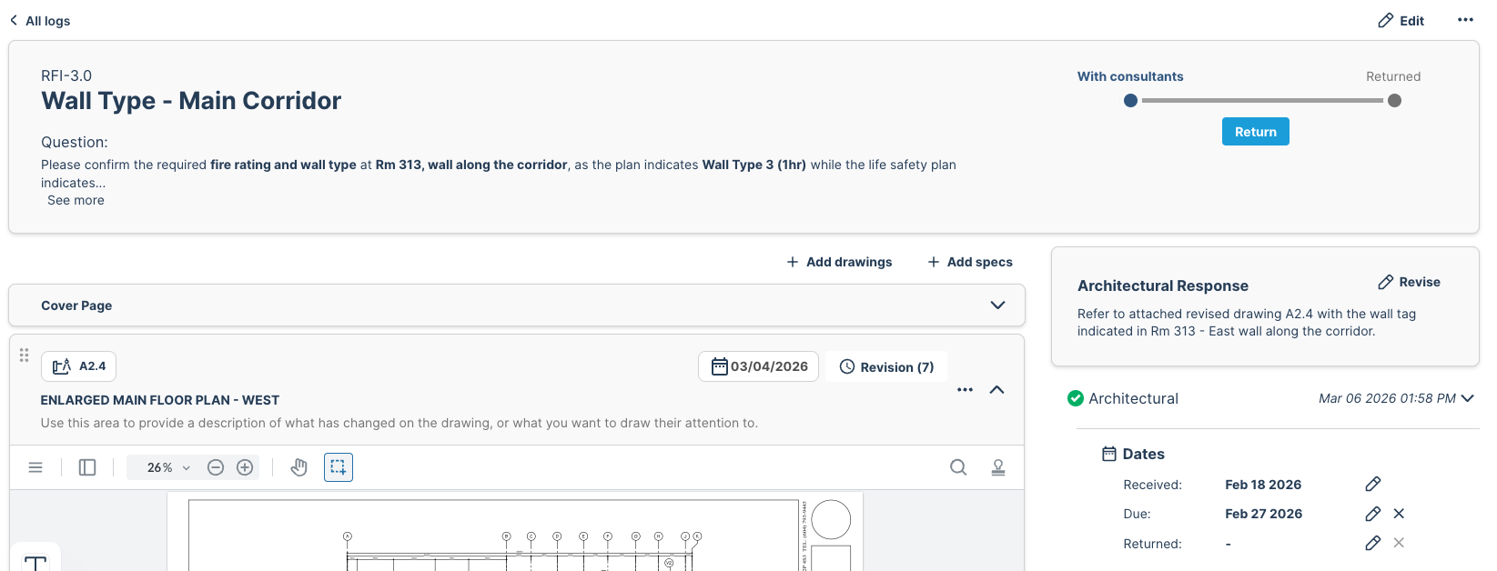 This article will show you how to add drawings or a sketch as part of a RFI response. Maybe you have a revised sheet to show a few new dimensions, or capture missing wall tags - whatever the reason, you can add a new version!