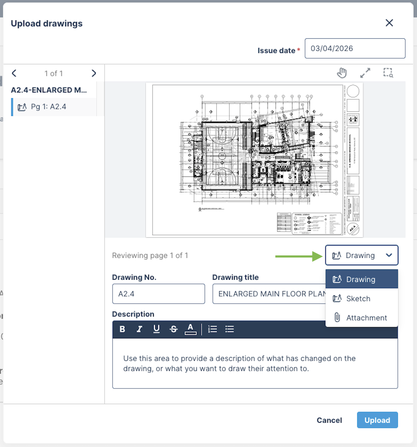 Step 2 - Drag and drop the attachment that has an updated full drawing sheet or sketch.