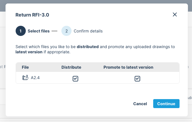 Step 3 - Return the RFI. At this point, you can decide if you want to make this the latest version of the drawing.