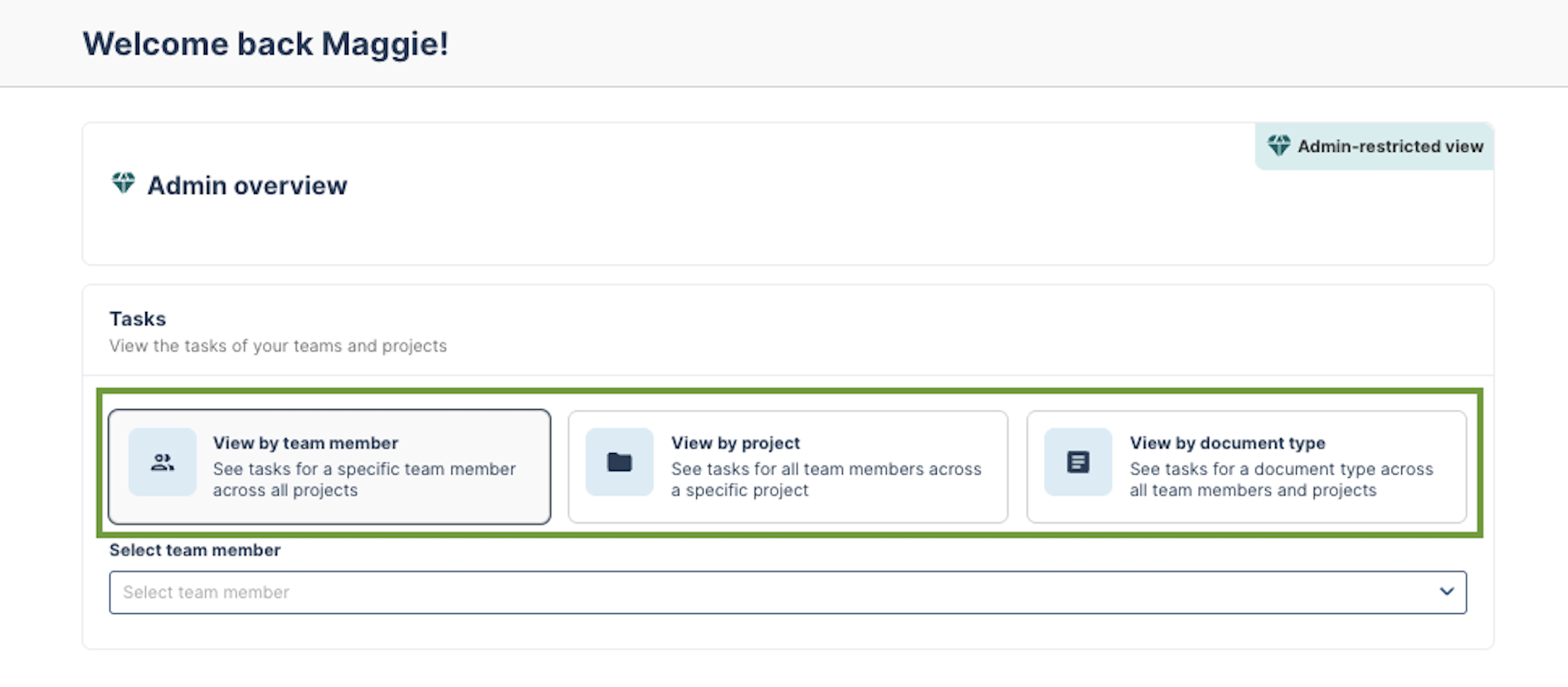 Pro Tip: The Admin Overview is a great tool to use during project meetings or end-of-week check-ins to make sure nothing is slipping through the cracks across your team!