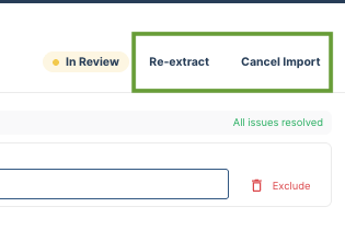 If the extraction doesn't look right, you can click 'Re-extract' to try again, or 'Cancel Import' to start over.
