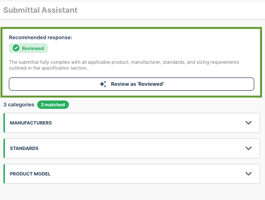 The assistant matches submittals to specs using the division code (e.g., 06 16 00). This is why accurate division codes matter when importing your specs!