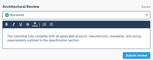 - Set your review status (e.g., Under Review, Reviewed As Noted, etc.).