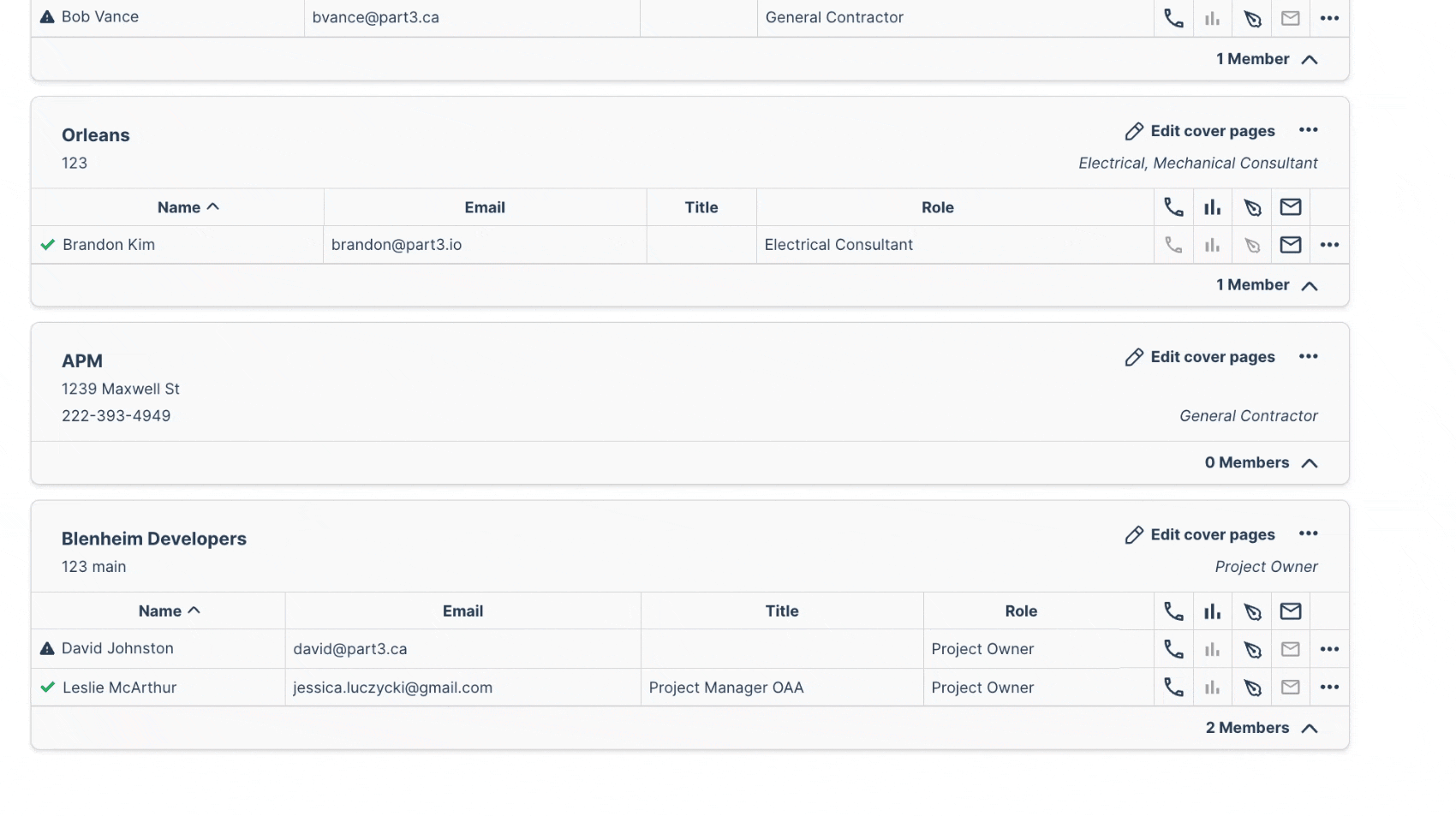 Step 2: Now select '...' next to the newly added company, followed by 'add member'. Add the General Contractors' contact person and their information. Make sure the 'send project invitation email' box is ticked. Click 'Add member' when finished.